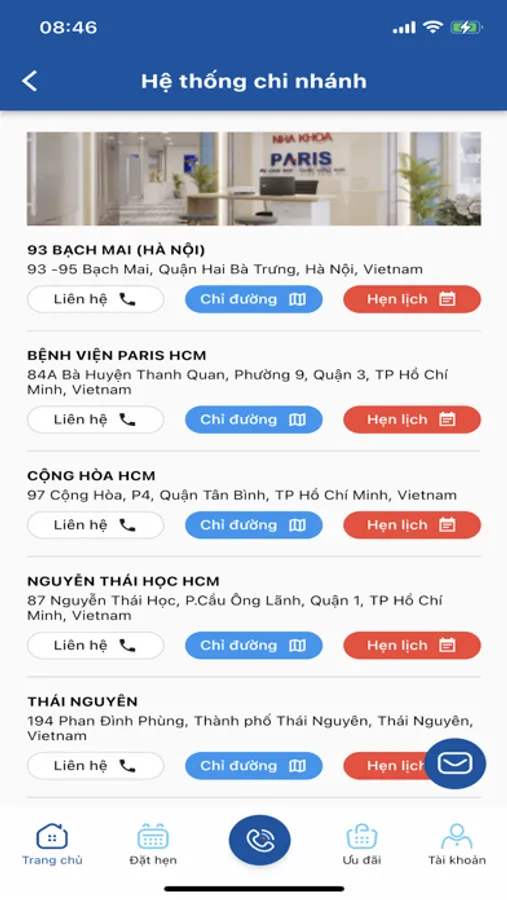 Với mục tiêu tập trung vào chất lượng, Nha Khoa Paris không thực hiện tăng trưởng nóng về số lượng. Tuy nhiên tính tới nay, chúng tôi đã có tới 13 chi nhánh tọa lạc trên tất cả các thành phố lớn.