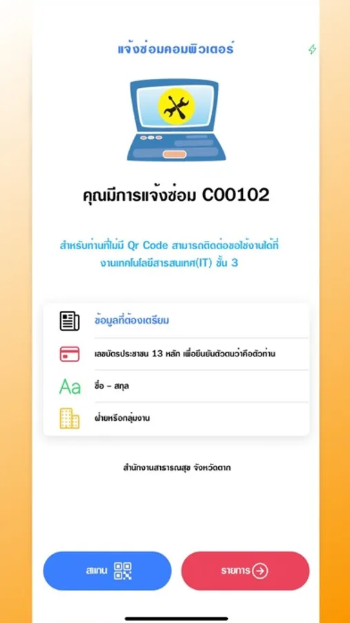 แจ้งซ่อมออนไลน์เพื่ออำนวยความสะดวกให้กับเจ้าหน้าที่และผู้มารับบริการ