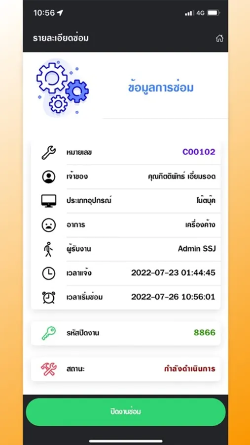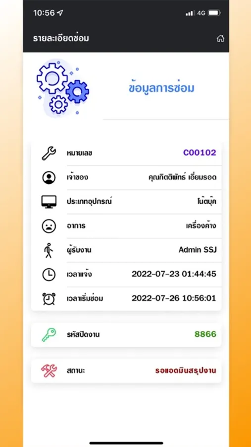 - ตรวจสอบสถานะการแจ้งซ่อม