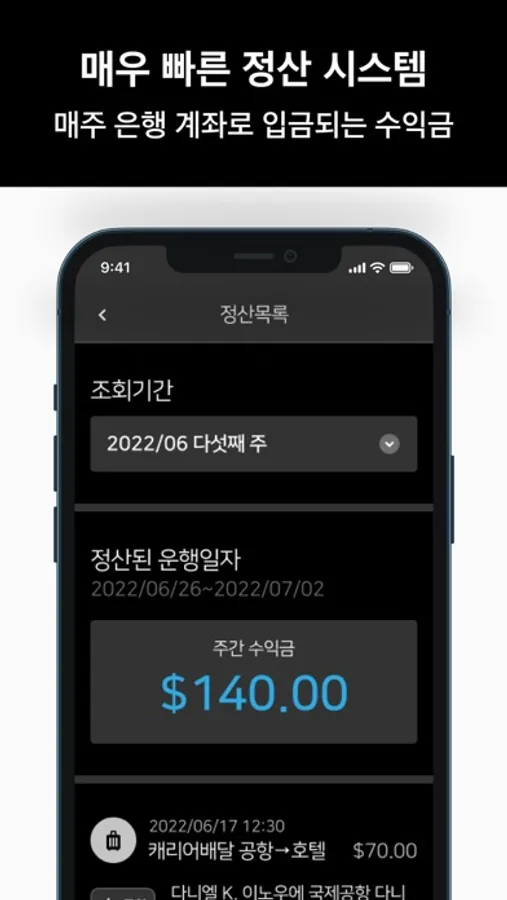 - 주 단위로 정산하여 즉시 은행 계좌로 입금