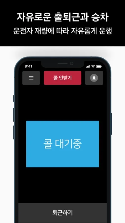 - 사용자 승차 요청 수락, 콜 대기, 휴식 할 때에는 콜 안받기 선택