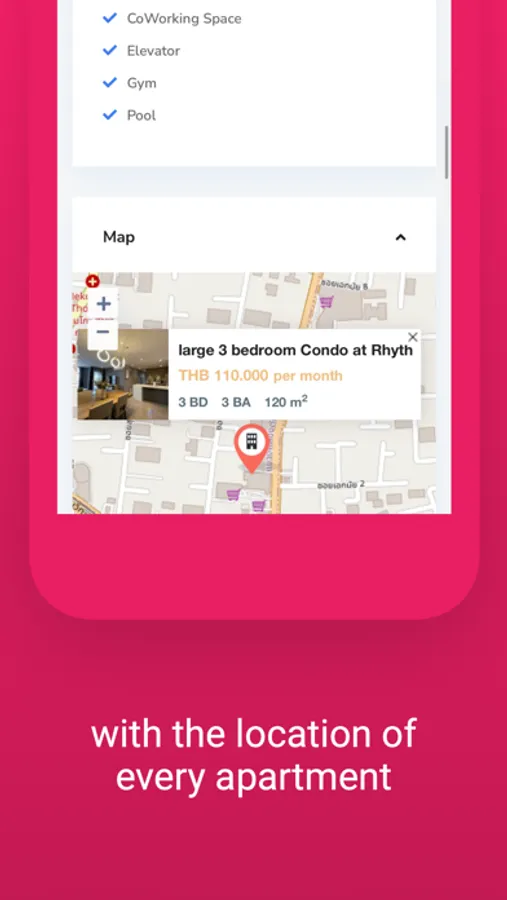 Our app will help you find your new home in Bangkok. Whether it's a small studio or a large 3 bedroom apartment, we have the right apartment for everyone.