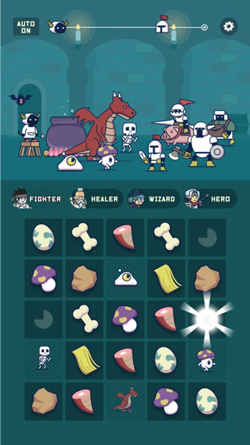 モンスターをパズルの外にスワイプして指を放すとモンスターがナベから飛び出して敵を自動的に攻撃してくれます。