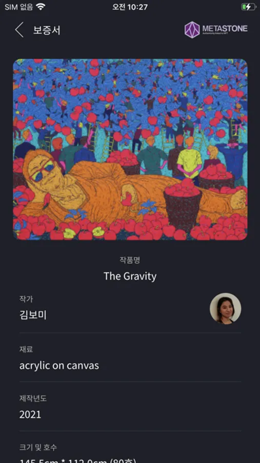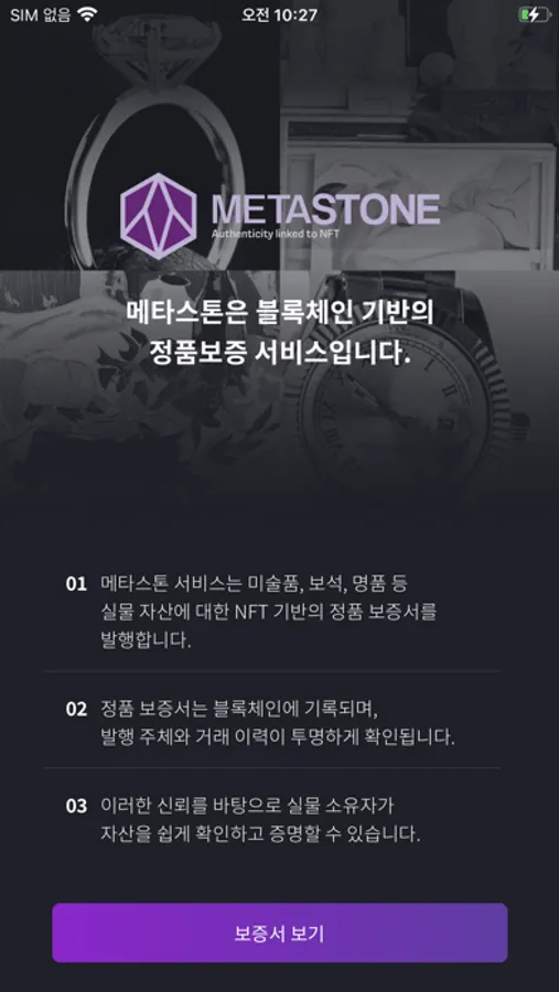 메타스톤 서비스는 미술품, 보석, 명품 등 실물 자산에 대한 NFT 기반의 정품 보증서를 발행합니다.
