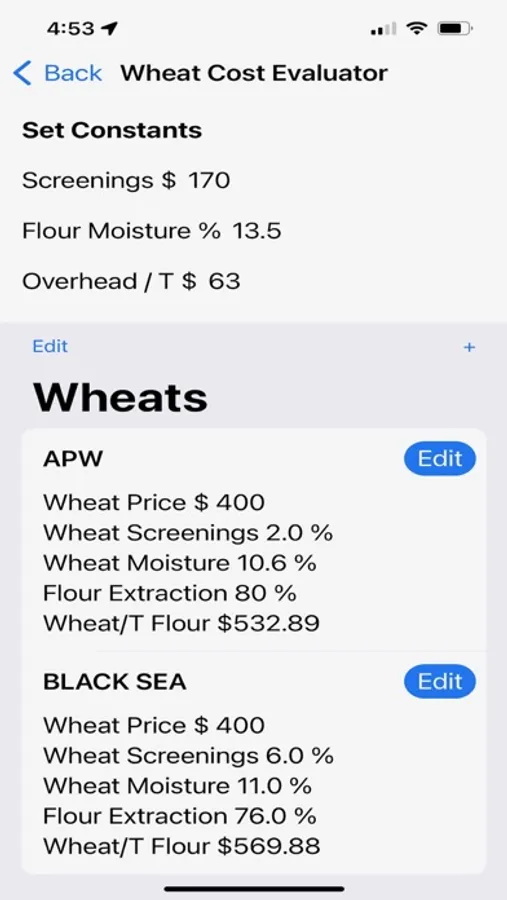 This is simple calculator for wheat and flour blending applications. The total cost of grain can be determined, by inputing all factors associated with grain pricing.