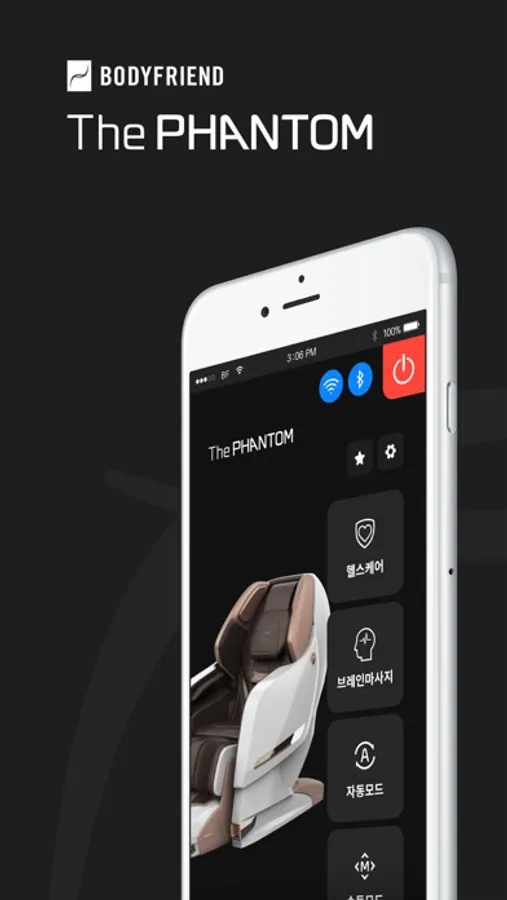 * 바디프랜드 더팬텀(The PHANTOM) 마사지체어가 있어야 모바일 디바이스와 연결해 사용 가능합니다.