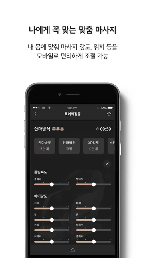 마사지 강도, 위치 등 마사지체어의 상태 변경을 모바일로 편리하게 해 보세요