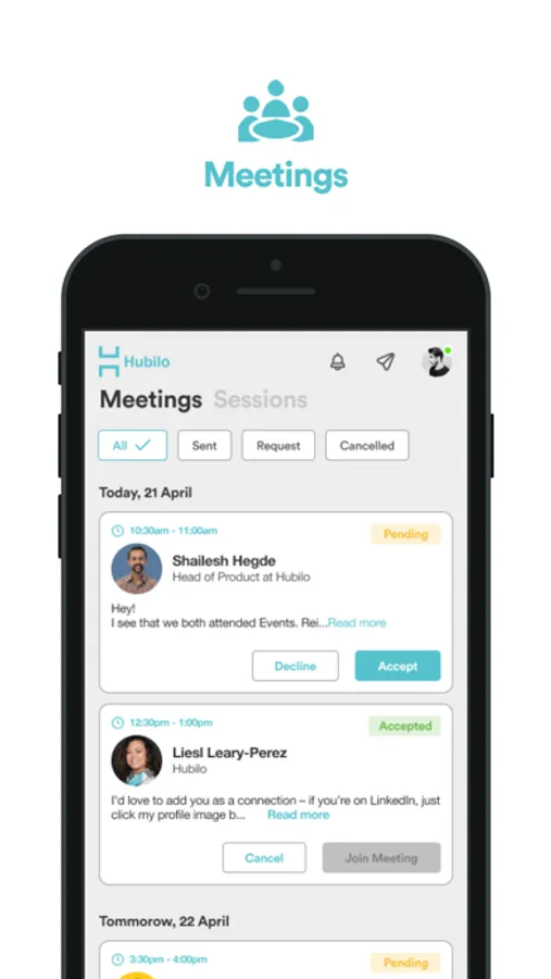 2. Set up meetings with potential attendees (partners, speakers, industry CxOs) by using the chat feature.