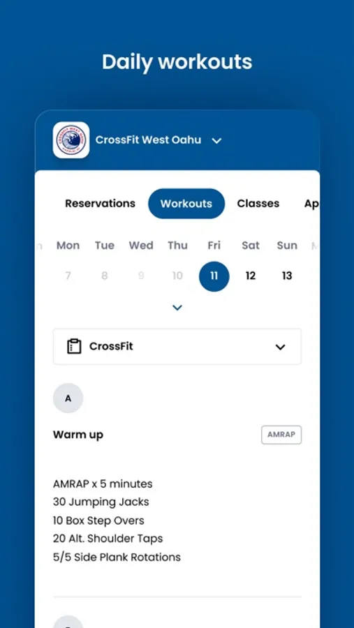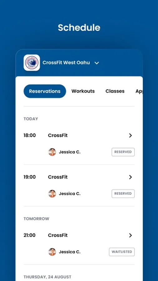 For members of CrossFit West Oahu to reserve their place in a class, sign up for gym events, and general account management like updating headshots and credit card on file.