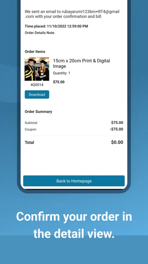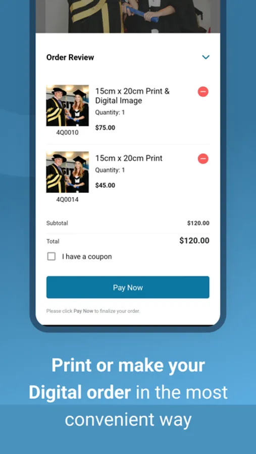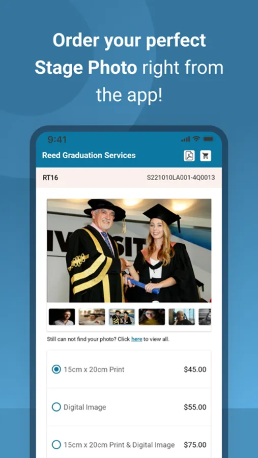 Order your Stage Photo and receive your print as well as digital copy - all from the app! After your stage photo is taken by our professional photographer, you will receive an SMS with a download link for the app as soon as the image is available on our servers. You can then order it to have it printed and collected from the booth same day as the event.