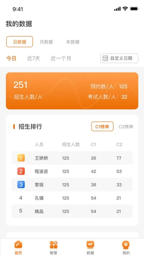 学员考试结果,预约记录查询方便快捷,教练请假,车辆维保,收支统计助理管理者轻松掌握驾校信息