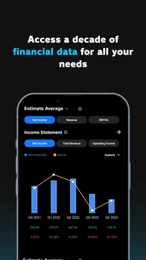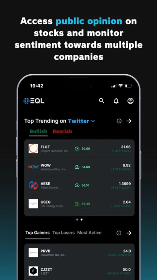 EQL graphs real-time social momentum, sentiment and popularity of the stocks you trade. Monitor the significant increases in post activity on Twitter which usually indicates there is something positive or negative occurring and will likely impact the sentiment of a company. Our Social Analytic tools enable you to control your trading better by understanding the psychology of retail investors in forums along with sentiment of latest news. Additionally, it is providing the most comprehensive information, simplified with 10+ years of Fundamentals, Real Time Price, Key Ratios, News and Top Analyst Rating.