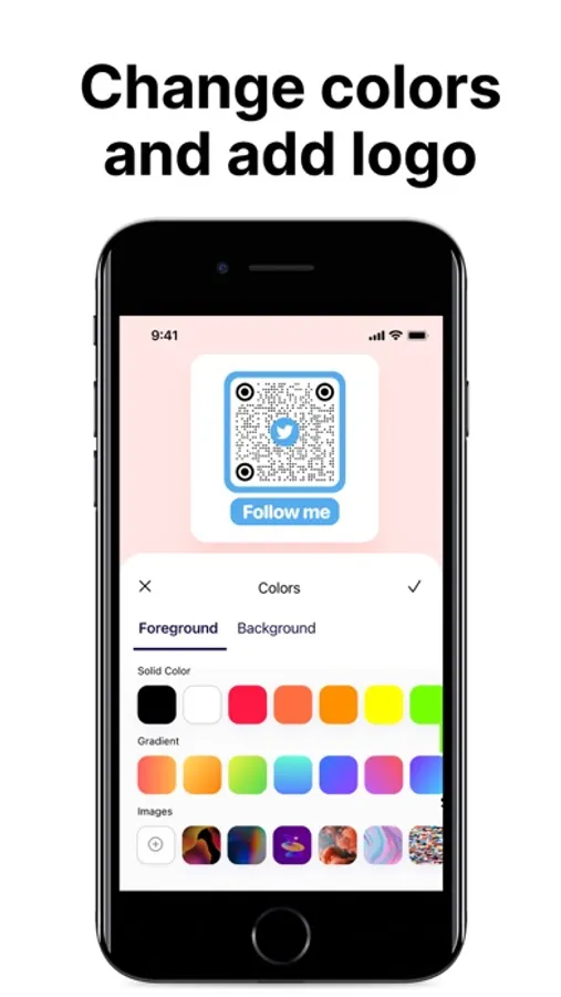 The QR Generator give the accessibility to customize as much as you like, by changing QR code colors, patterns frames and Logo.