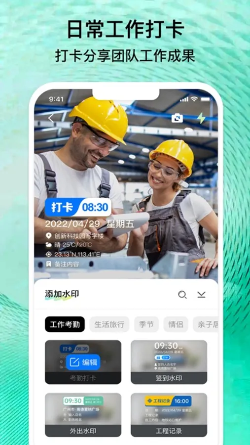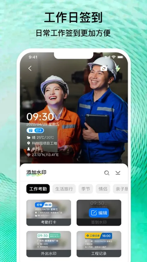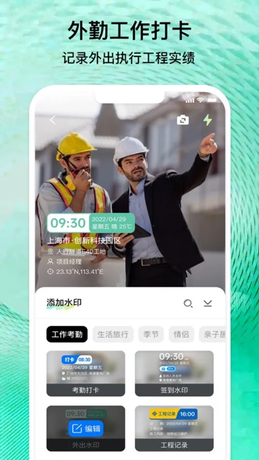 无论你在哪里,都可以使用水印相机记录工作生活。