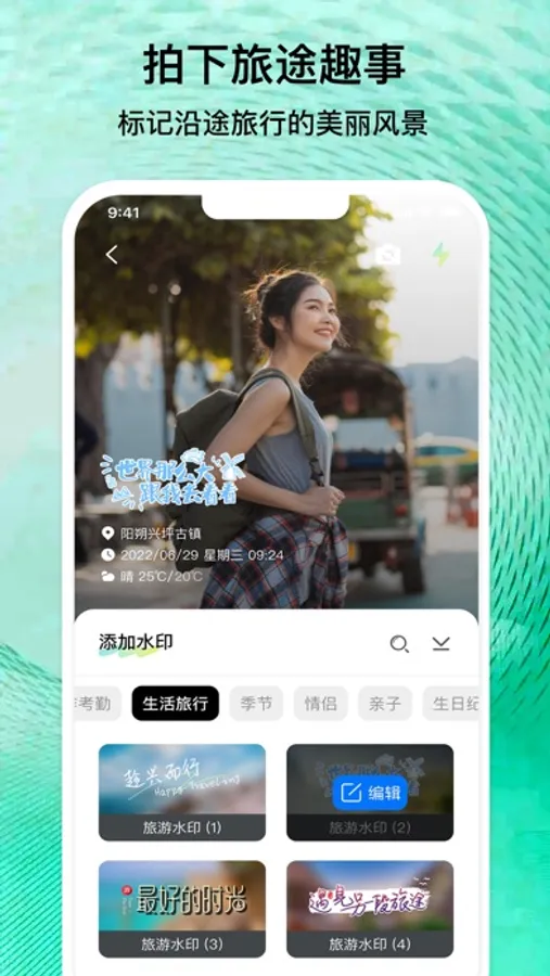 • 相册水印: 可以选择相册图片进行编辑水印,记录美好瞬间。