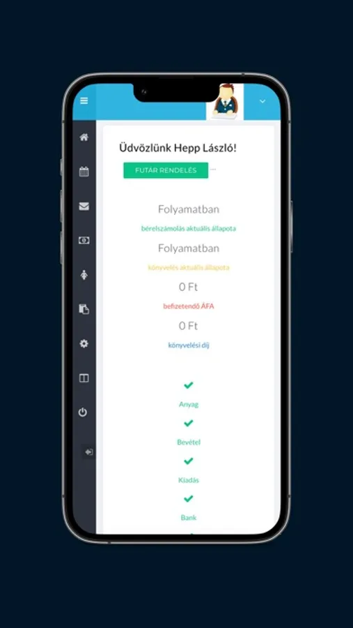 A könyvelőirodai ügyfeleink részére kialakított ügyintézési felület. Megtekinthetik számláikat, aktuális forgalmukat, alkalmazottaikat, áfa és bérszámfejtési adataikat. Kitölthető az online jelenléti ív, a könyvelési adatok. Feltölthető a könyvelési anyag és meg is tekinthető a már könyvelt forgalom. Irodánkba időpont foglalható és a Nekünk küldött levelek állapota is követhető.