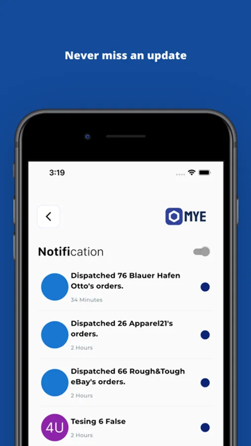 The main goal of the MYE App is to give our subscribers the flexibility to monitor and stay updated about their daily operations on a mobile device without having to use a full desktop interface.