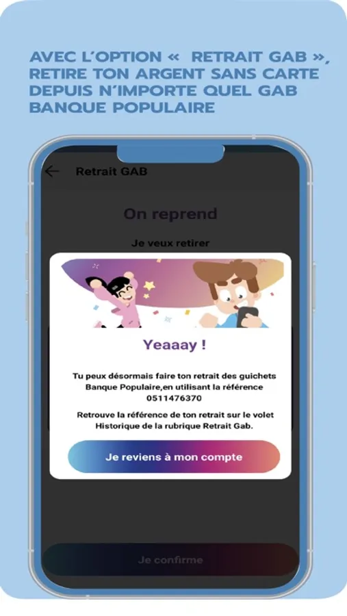 L’enfant pourra instantanément compléter la création de son compte en téléchargeant l’application Swipe By Banque Populaire.