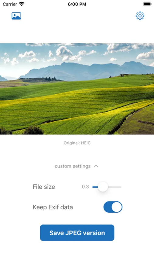 This App converts a HEIC image file to JPEG format file.