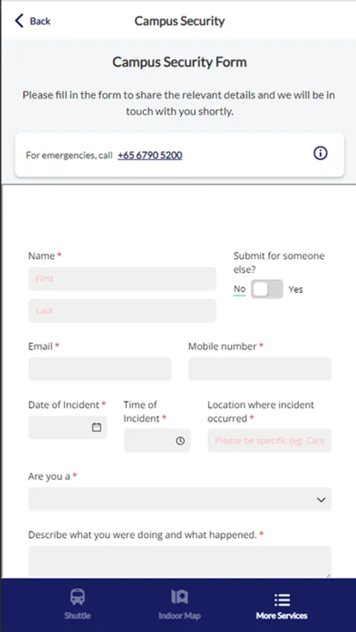 4. Contact campus security Report incidents and security concerns directly using the NTU Omnibus app.