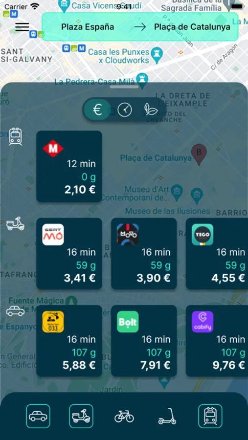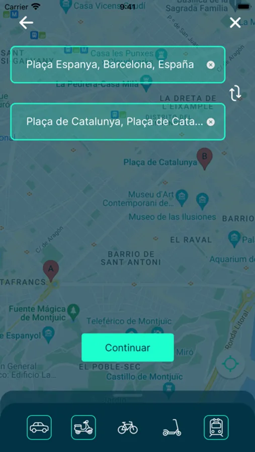 - Elige los medios de transporte con los que te gustaría desplazarte u obtener información