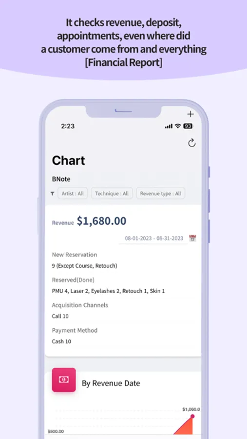 - A financial report that can be monitored everything such as appointment date, means of payment, revenue etc