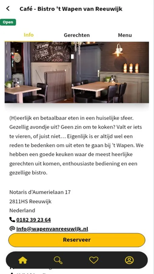 Heb je een leuk restaurant gevonden of een mooi gerecht kan je het in je favorieten zetten en snel kijken of reserveren bij het restaurant.