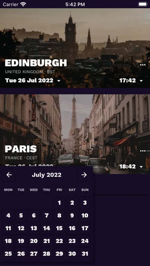 Nomad is a time converion app that helps to manage time across multiple timezones and locations. It takes a graphical approach to illustrating locations using Unsplash images loaded dynamically.