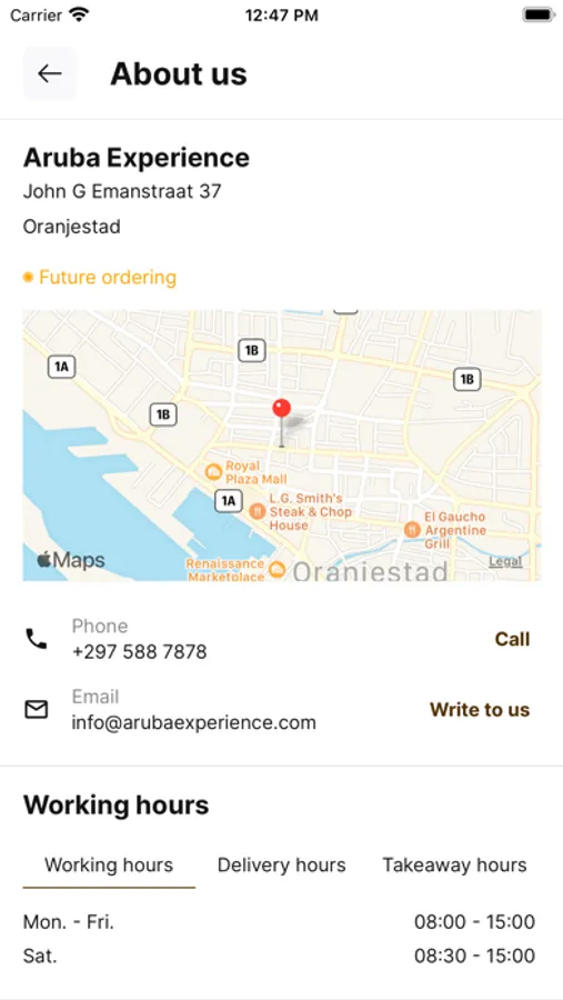 Order online in Aruba Experience