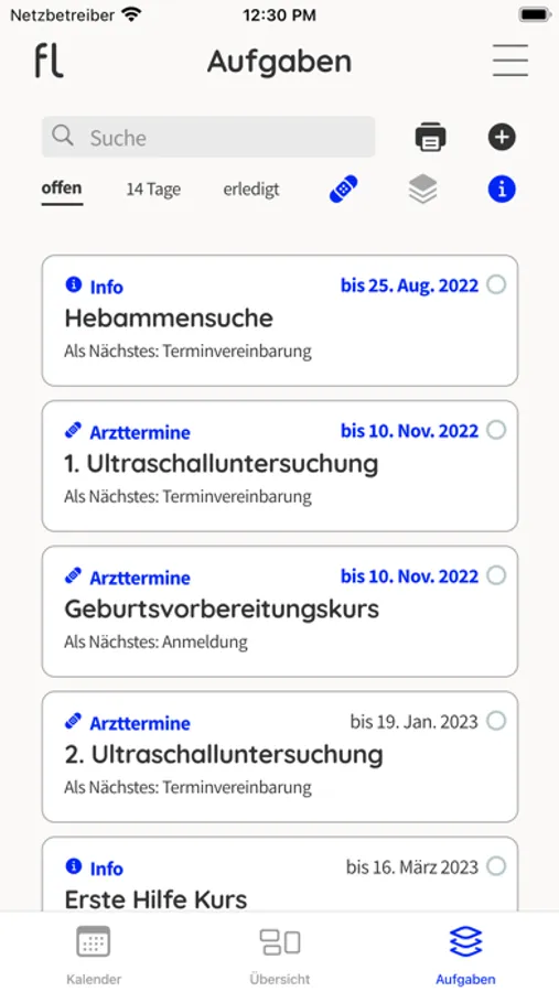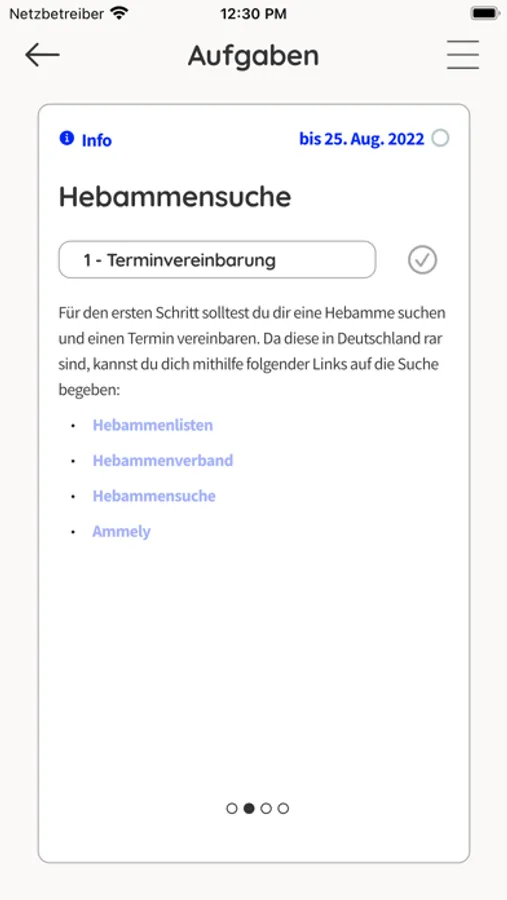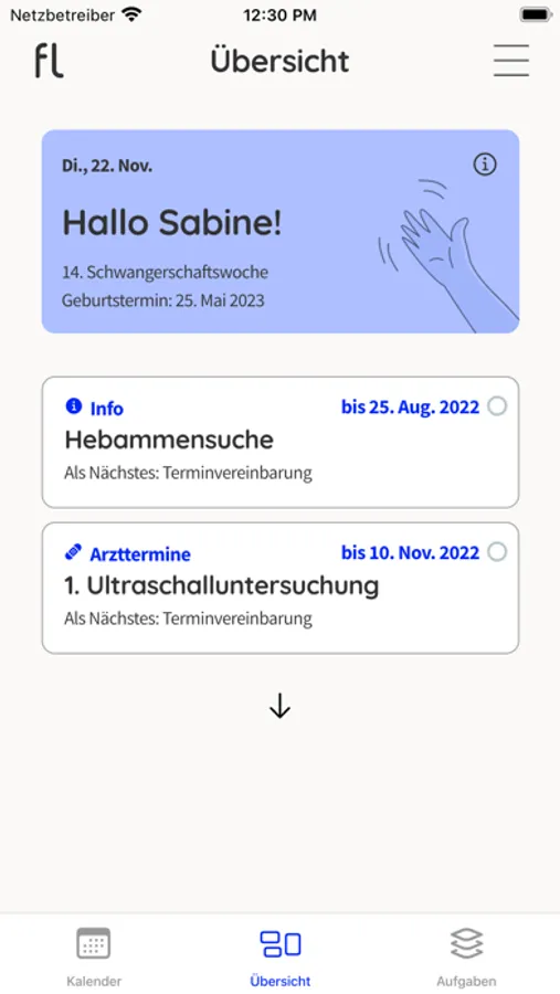 Erinnerungen an alle ärztlichen Untersuchungen während der Schwangerschaft.