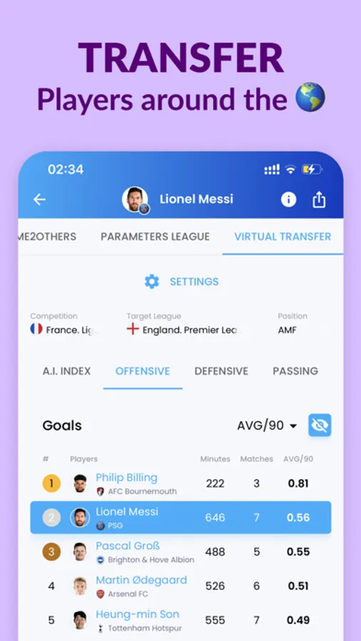- Virtual Transfer: Virtually Transfer a player to another league & see their possible rankings.