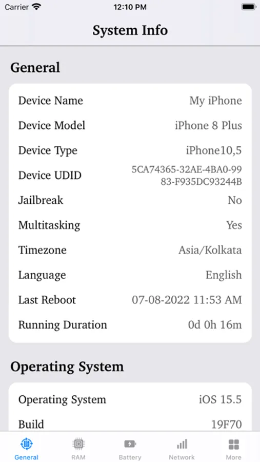 - Basic info like device name and model