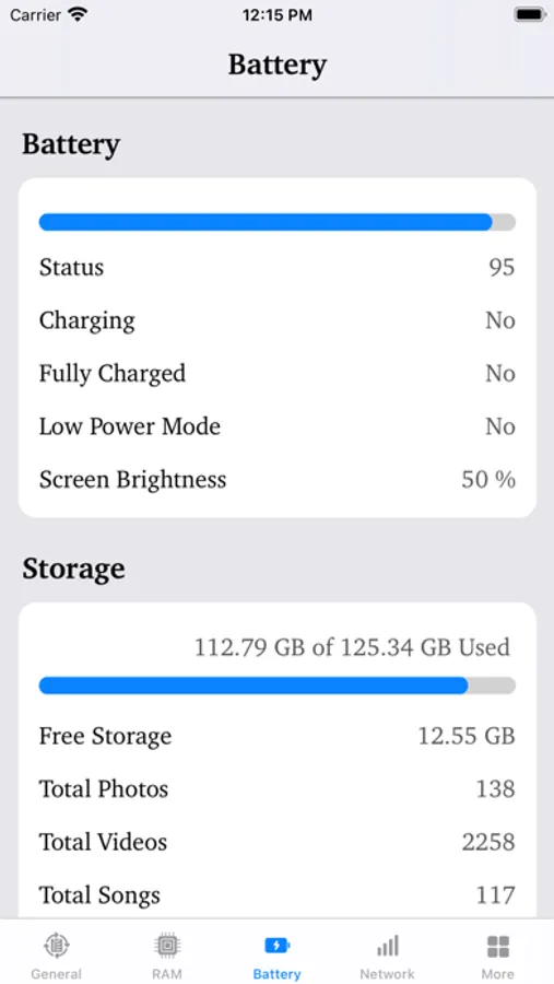 - Battery status with percentages