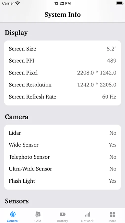 - Sensors info