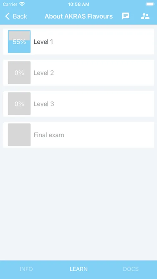 In addition to classic learning, level learning is also offered. In level learning, the system divides the questions into three levels and asks them randomly. Between the individual levels, there is a breather in order to store the content in the best possible way. This is necessary to achieve a brain-friendly and sustainable acquisition of knowledge. A final test makes the learning progress visible and shows where possible deficits lie and, if necessary, a repetition makes sense.