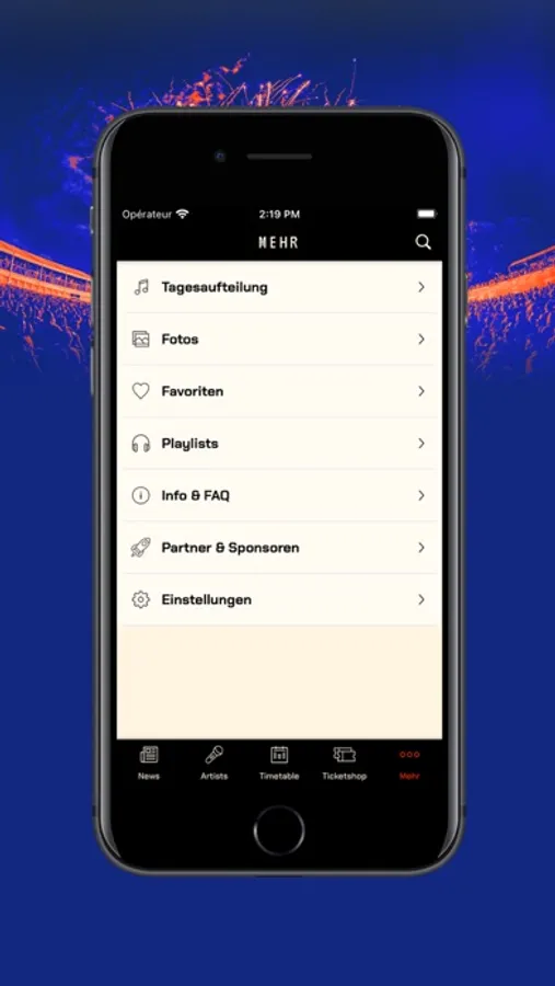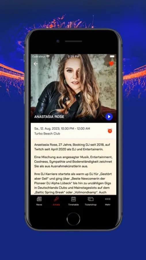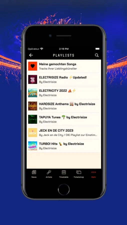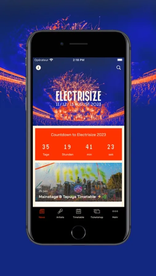 - das aktuelle Line Up (wähle deine Lieblingskünstler aus und verpasse durch die Erinnerungsfunktion keine Show)
