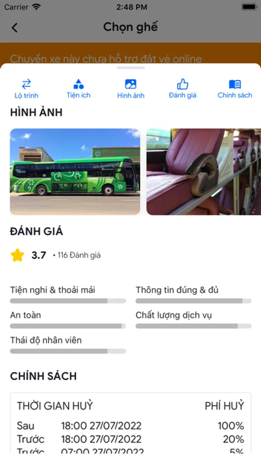 + Quy trình hủy vé đơn giản ngay trên app và được hoàn tiền theo quy định.