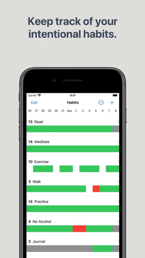 If you're just starting out with one or two habits or already have a long list of things you want to keep track of — HabitBoard imposes no limitations on the number of habits you can track.