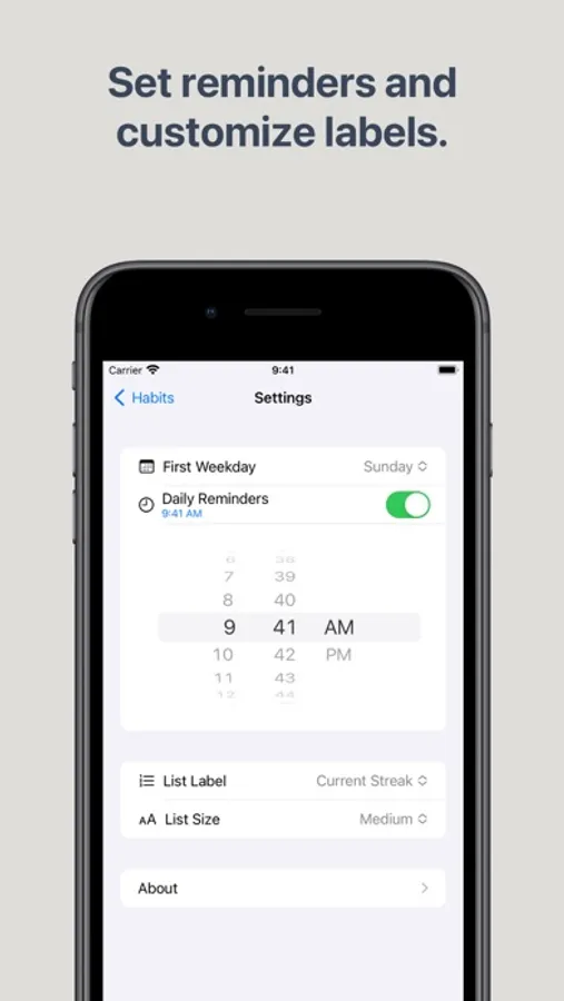 When you're starting out, a daily reminder can be useful. If you want, the app notifies you when it's time to review your HabitBoard for the day.