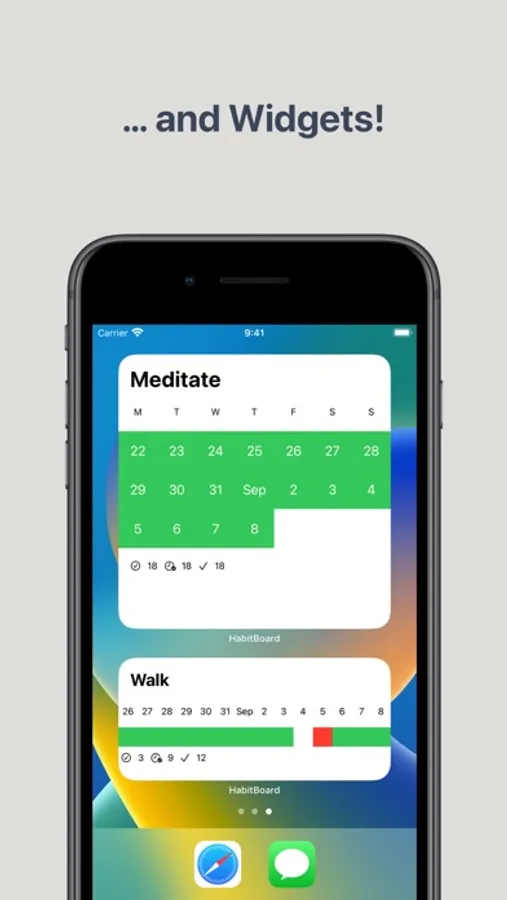 HabitBoard offers Lock Screen widgets, a daily completions widget, and small, medium, and a large calendar-like widgets (which are interactive on iOS 17) so that you can glance on your habits even if you're not using the app.