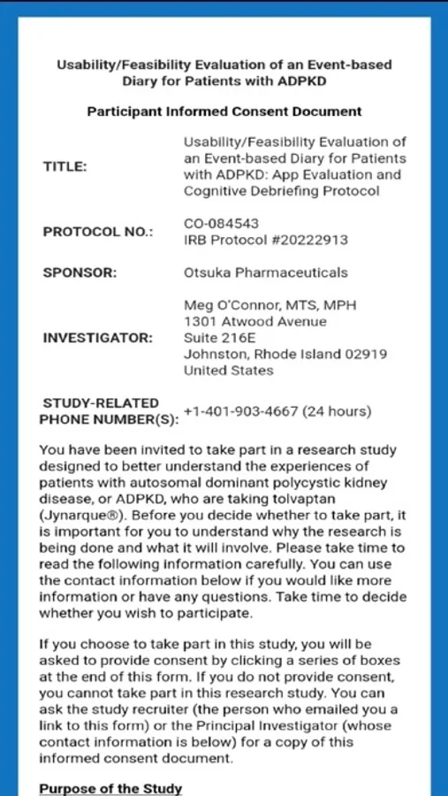 You have been invited to take part in a research study designed to better understand the experiences of patients with autosomal dominant polycystic kidney disease, or ADPKD, who are taking tolvaptan (Jynarque®). Before you decide whether to take part, it is important for you to understand why the research is being done and what it will involve.