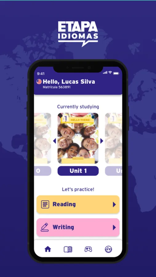 Com o App Etapa Idiomas, você pode revisar e aprofundar os conteúdos de uma forma divertida e interativa! Por meio de atividades de Reading, Writing, Listening, Speaking, jogos e diversos recursos multimídia, você transformará a sua jornada de aprendizado. Faça parte dessa experiência única.
