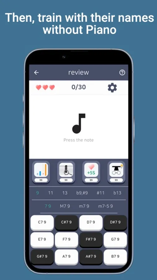 In Training Mode, gradually improve your listening skills by clearing stages from Notes to Tension Chords, 251 Voicings, and Mode Scales.