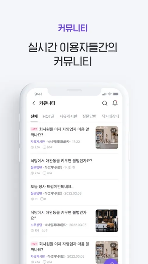 자영업자 사장님들의 근황, 직거래 장터, 노무상담 Q&A, 질문과 답변 등 쉽게 찾기 힘든 어려운 창업 이야기를 함께 나눠보세요.