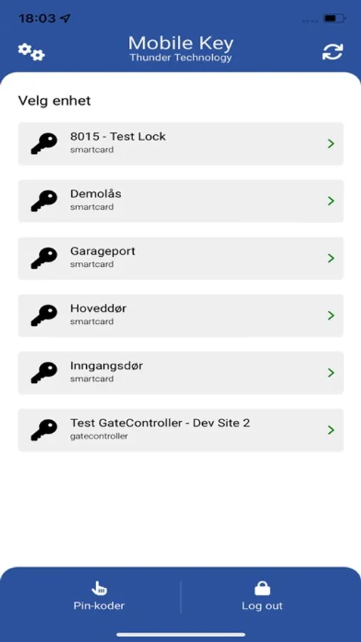 Appen kobler seg opp mot Locky av Thunder Technology AS sin server og gir brukere tilgang til sine mobile nøkler.