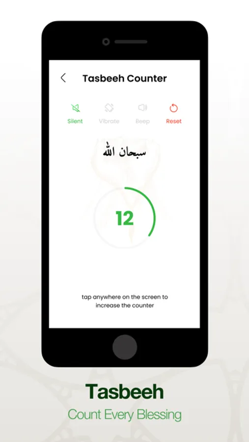 Tasbeeh Counter: Record all your zikars and azkars. Save and continue from where you left off.