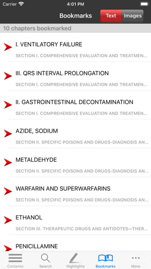 • Section II. Lists specific poisons and drugs, as well as the pathophysiology, toxic dose and level, clinical presentation, diagnosis, and specific treatment associated with each substance.