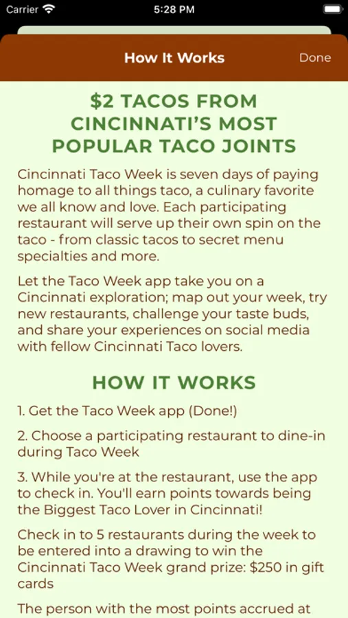 Let the Taco Week app take you on a Cincinnati exploration; map out your week, try new restaurants, challenge your taste buds and share your experiences on social media with fellow taco lovers.