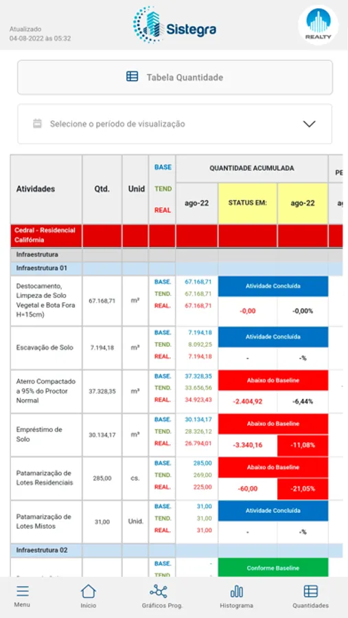 Acompanhe obras de engenharia, gerencie planejamento de atividades e tarefas, obtenha a análise da evolução do empreendimento em cada etapa. Gerencie histogramas de mão de obra e equipamentos, obtenha previsões climáticas da localidade da obra e faça o acompanhamento dos relatórios fotográficos e analíticos gerados pela plataforma.