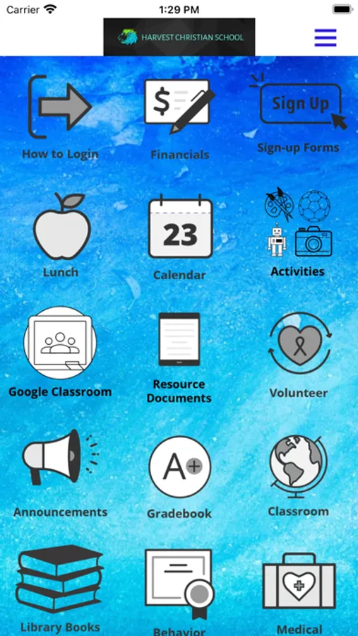 Welcome to the official app for Harvest Christian School in Riverside, CA. This app is a one-stop-shop for our parents and grandparents. This app gives you anytime, anywhere access to all the tools, content, and communications needed to stay connected and engaged. This app is our primary communication portal and provides easy access to Announcements, Calendar of Events, Student Grades and Homework, Athletics, Activities, FACTS Financial, and so much more!